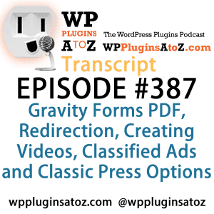 Plugins for Gravity Forms PDF, Redirection, Creating Videos and Classified Ads in Episode 387 December 20, 2018 Read More »